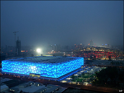 "آشیانه پرنده" در نزدیکی ورزشگاه تازه ساخته شده "مکعب آب" قرار دارد که قرار است مسابقات شنا، شیرجه و واترپولوی المپیک در آن برگزار شود.