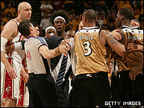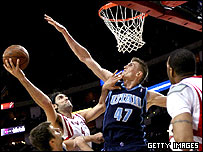 مسابقات مرحله حذفی بسکتبال حرفه ای آمریکا (NBA)، با پیروزی سن آنتونیو اسپرز در نبردی نفس گیر مقابل فینیکس سانز آغاز شد. تیم دانکن، "برج" سن آنتونیو، با به ثمر رساندن اولین شوت سه امتیازی خود در فصل جاری، نه تنها سن آنتونیو را 3 ثانیه مانده به پایان وقت اضافه اول از شکست نجات داد، بلکه با کسب 40 امتیاز، 15 ریباند و 3 بلاک شات، کلید پیروزی 117-115 سن آنتونیو مقابل فینیکس بود. در دیدار حاساس کنفرانس غرب که دوبار به وقت اضافه کشیده شد، فینیکس در سه کوارتر اول کنترل بازی را در اختیار داشت، تا یک دقیقه و 10 ثانیه مانده به پایان بازی از حریف پیش بود و امید به انتقام گرفتن از تیمی که فصل قبل با خشونت تمام مانع موفقیت فینیکس شد، در چشم بازیکنان فینیکس موج می زد. اما در شرایطی که تنها 15 ثانیه به پایان بازی مانده بود، مایکل فینلی، گار با تجربه فینیکس با به ثمر رساندن یک سه امتیازی، بازی را به وقت اضافه کشاند. در وقت اضافه اول فینیکس با اتکا به آماره استودامایر و استیو نش تا مرز شکست دادن سن آنتونیو در زمین این تیم پیش رفت، اما دانکن که تنها به واسطه اطمینان بازیکنان فینیکس از ناتوانی او در پرتاب سه امتیازی، پشت خط سه امتیازی تنها صاحب توپ شد، امکان پیروزی را از فینیکس گرفت. در وقت اضافه دوم این بار فینیکس بود که 15 ثانیه مانده به پایان بازی با یک سه امتیازی از سوی استیو نش نتیجه را مساوی کرد. اما مانو جینوبلی فوروارد آرژانتینی سن آنتونیو، در لحظات پایانی مسابقه با توپ به درون محوطه سه ثانیه فینیکس نفوذ کرد و کمتر از دو ثانیه به پایان مسابقه توپ را درون سبد فینیکس قرار داد تا سن آنتونیو اولین مسابقه را به سود خود به پایان برساند. کابوس دالاس در نیمه دوم