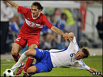 بازيکن افسانه ای: چه کسی غیر از شوکور؟ در هر سه بازی ترکیه در 1996 شرکت کرد و در سال 2000 به بلژیک 2 گل زد. ستاره: حمید التین تاپ. بعد از 4 سال حضور موفق در شالکه، این بازیکن 25 ساله خط میانی، در سال 2007 به بایرن مونیخ پیوست و در اولین فصل حضورش خوش درخشید. اما شکستگی استخوان کف پایش در ماه مارس باعث شد مدتی از حضور در تیم باز بماند. نقطه قوت: همیشه می گویند که ترکیه با روحیه باشگاهی بازی می کند. بازیکنان همدیگر را خوب می شناسند و بسیاری از آنها تجربه بازی در بعضی از بزرگترین لیگ های اروپایی را دارند. نقطه ضعف: هنوز معلوم نیست دروازه بازبان کیست. روستو رجبر، وولکان دمیرل و تولگا زنگین هر سه برای پوشیدن پیراهن شماره يک در رقابتند. البته احتمالا والکان موفق می شود. سرعت پائين بازی شان ممکن است برایشان دردسرساز شود. رده بندی جهانی: بیست و پنجم نظر ما: به سختی صعود کردند و احتمالا آتشی در جام اروپای 2008 به پا نخواهند کرد. به رسیدن به مرحله یک چهارم نهایی راضی اند ولی به نظر نمی رسد به آن دست یابند. |