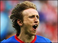 این تیم در دقیقه چهار مسابقه مقابل اتریش، دیگر میزبان مسابقات، بخاطر اشتباه رنه آوفهاوزر و خطا بر روی ایویکا اولیچ، بازیکن کرواسی که در سمت چپ دروازه اتریش و در داخل محوطه جریمه در حال حرکت بود، صاحب پنالتی شد. لوکا مودریچ با به ثمر رساندن این پنالتی، سریعترین پنالتی به ثمر رسیده در تاریخ مسابقات را رقم زد، اما پس از آن شرایط برای کرواسی ساده تر نشد. کرواسی پس از به ثمر رساندن گل آرام تر شد و کنترل توپ را در اختیار گرفت. در برابر، تیم میزبان هربار که کرواسی یک بازی ایستگاهی را آغاز می کرد، آسیب پذیر نشان می داد واین موضوع بازیکنان اتریش را تحت فشار گذاشت. اتریش هر چند خود را چندین بار به دروازه کرواسی نزدیک کرد اما بازیکنان این تیم توانایی فنی تبدیل ضربات آخر به گل را نداشتند. در اواخر نیمه اول و از آغاز نیمه دوم اتریش عملکردی بهتر از آنچه کارشناسان از تیم صد و یکم جهان انتظار داشتند را به نمایش گذاشت، اما با این حال بی دقتی بازیکنان این تیم از جمله سباستین پرودل و یواکیم اشتاندفست در زدن ضربات آخر باعث شد این تیم راه به جایی نبرد و حتی حضور ایویکا واستیچ، مسن ترین بازیکن حاضر در این مسابقات (38 سال سن) نیز نتوانست کمکی به اتریش بکند. در بیشتر مواقع نیمه دوم مالکیت در اختیار اتریش بود اما کرواسی به راحتی توپ را از این تیم پس می گرفت و خط حمله اتریش در برابر کرواسی ناتوان بود. با این حال، هرچند کرواسی مسابقه را به سود خود خاتمه داد، اما شباهتی به تیمی که به اعتقاد کارشناسان، بهتی هرچند اندک برای قهرمانی در مسابقات دارد، نداشت. در حال حاضر، آلمان و کرواسی با سه امتیاز در مکانهای اول و دوم جدول گروه B قرار دارند (به واسطه اختلاف در تفاضل گل) و اتیش و لهستان هم بدون امتیاز این دو تیم را تعقیب می کنند. |