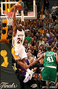 سلتیکز نتوانست در لس آنجلس کار را تمام کند. کوبی برایانت 25 امتیاز، هفت ریباند و پنج توپ ربایی به نام خود ثبت کرد و لامار اودوم هم 20 امتیاز به امتیازات او افزود تا لس آنجلس لیکرز در بازی پنجم فینال فصل بسکتبال حرفه ای آمریکا (NBA) با نتیجه 103-98 بر سلتیکز پیروز شود و نتیجه بازی ها در مجموع به 3-2 به سود بوستون تغییر کند. در تیم مقابل پال پیرس 38 امتیاز و هشت ریباند کسب کرد اما ری آلن و کوین گارنت با 16 و 13 امتیاز نتوانستند کمک چشمگیری به او انجام دهند. به این ترتیب فینال در بوستون ادامه پیدا خواهد کرد که اگر میزبان بتواند سه شنبه شب (به وقت محلی) در مسابقه ششم فینال بر لیکرز پیروز شود، نیازی به برگزاری بازی هفتم نخواهد بود. پر فراز و نشیب لیکرز که می دانست شکست به معنی هفدهمین قهرمانی باشگاه سلتیکز خواهد بود، بازی را با جدیت آغاز کرد. کوبی برایانت در هشت دقیقه اول بازی چهار سه امتیازی به ثمر رساند و لیکرز در ثانیه های اول کوارتر دوم 19 امتیاز از بوستون پیش بود. اما بوستون که در بازی قبل اختلافی 21 امتیازی را برای کسب پیروزی جبران کرده بود، دوباره به کار افتاد و در آستانه پایان نیمه اول اختلاف را به سه امتیاز کاهش داد. در کوارتر سوم بازی به اندازه ای نزدیک شد که تیم پیشتاز چهار بار تغییر کرد، اما لیکرز، در لحظاتی که کوبی برایانت عملکرد متزلزلی داشت، بالاخره کنترل بازی را در اختیار گرفت. هرچند در اوایل کوارتر چهارم لیکرز دوباره اختلاف را به 14 امتیاز افزایش داد (74-88) اما بوستون برنامه ای دیگر داشت. اضطراب در لحظات آخر یک دقیقه و چهارده ثانیه مانده به پایان مسابقه، کوبی دو شوت خود را از دست داده بود و پال پیرس با دو پرتاب آزاد اختلاف را به دو امتیاز کاهش داد (95-97 به سود لیکرز). درک فیشر در حمله بعد نتوانست پرتابی سه امتیازی را به ثمر برساند و 48 ثانیه به پایان، و وقتی پال پیرس توپ را در اختیار گرفت، نفس ها در سینه حبس شد. اما برایانت توپ را از میان دستان پیرس زد و در حمله ای سریع و با پاسی که از لامار اودوم دریافت کرد، توپ را (37 ثانیه مانده به پایان) درون سبد سلتیکز جای داد. دو تیم از دو تایم اوت تاکتیکی در فاصله 13 ثانیه از یکدیگر نتیجه ای نگرفتند تا زمانی که ابتدا فیشر و سپس برایانت هر کدام با به ثمر رساندن یک پرتاب آزاد، شانزده ثانیه مانده به پایان مسابقه نتیجه را به 101-95 تغییر دادند. با این حال دو ثانیه بعد ادی هاوس با یک پرتاب سه امتیازی شوک دیگری به لیکرز وارد کرد و نزدیک بود توپ را بار دیگر از لیکرز برباید. اما خطای تاکتیکی بر روی درک فیشر که به دو پرتاب آزاد و امتیاز دیگر برای لیکرز منجر شد پیروزی را تضمین کرد. بوستون در آستانه قهرمانی
