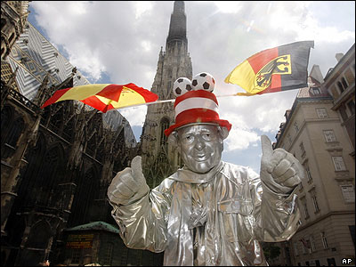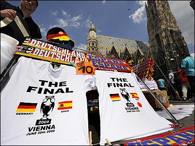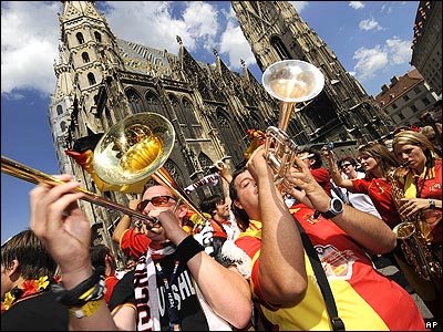 در آستانه برگزاری فینال جام ملتهای اروپا در شهر وین، طرفداران دو تیم اسپانی و آلمان صبح روز مسابقه را به شادی و تفریح گذرانده اند. مرکز تجمع اصلی طرفداران، میدان مقابل کلیسای سنت استفان در این شهر بود، هرچند در روز های اخیر کل شهر وین تحت تاثیر هجوم علاقمندان فوتبال قرار گرفته است. آنچه فضا را برای لذت بردن طرفداران مناسب تر ساخت، هوای آفتابی پایتخت اتریش بود.