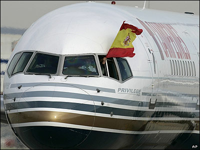 هواپیمای حامل اعضاء تیم عصر روز دوشنبه در ساعت 17:40 به وقت گرینویچ در فرودگاه باراخاس مادرید فرود آمد.