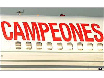 کاسیاس، دروازه بان و کاپیتان، و لوئیس آراگونز مربی تیم جام قهرمانی موسوم به جام "آنری دلانی" را از هواپیما بیرون آوردند.