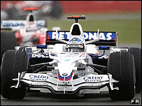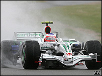 با وجود مخالفت تقدیر، انتظار لویس همیلتون برای پیروزی در گراندپری خانگی به پایان رسید. در روزی که هوای بارانی در پیست سیلورستون بسیاری از بهترین رانندگان و تیم فرمول یک شرکتهای اتومبیلسازی جهان را با مشکل مواجه کرده بود، همیلتون راننده بریتانیایی تیم مکلارن موفق شد با وجود آغاز مسابقه از مکان چهارم، پیش از سایر رقبا از خط پایان عبور کند. نیک هایدفلد راننده آلمانی تیم ب ام و برای دومین بار در سه مسابقه اخیر به مکان دوم دست یافت و روبنز باریکلو، با تجربه ترین راننده حاضر در مسابقات فصل جاری، با کمک شرایط متغییر جوی و استراتژی صحیح برای انتخاب لاستیک، توانست برای اولین بار در طی دو فصل اخیر، اتومبیل تیم هوندا را در جمع سه راننده اول از خط پایان بگذراند. به این ترتیب لویس همیلتون، همراه با کیمی رایکونن (چهارم در این مسابقه) و فیلیپه مسا (بدون امتیاز) با 48 امتیاز در صدر جدول رانندگان رقابتهای این فصل فرمول یک قرار گرفت. این پیروزی به ویژه از این رو برای لویس همیلتون اهمیت داشت که او در طی دو مسابقه قبل نتوانسته بود امتیازی کسب کند و از این رو به شدت از سوی مطبوعات بریتانیایی مورد انتقاد و فشار قرار داشت. باران = هیجان در هنگام آغاز مسابقه، هایکی کووالاینن (مکلارن)، مارک وبر (ردبول) و کیمی رایکونن (فراری) در مکانهای اول تا سوم قرار داشتند، اما تقریبا مسجل بود که به واسطه بارانی بودن هوا باید در ابتدای مسابقه منتظر تغییرات زیادی بود. تغییر از ابتدای مسابقه رخ داد.