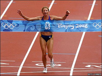 کنستانتینا تومسکوی رومانیایی با سن 38 سال مدال طلای ماراتن زنان را به دست آورد. او هرچند از میانه مسیر از دیگر رقبا پیش بود اما تا آخرین دقایق با نگرانی پشت سر خود را نگاه می کرد.
