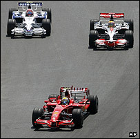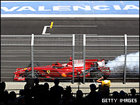 رایکونن در زمان سوختگیری دوم می توانست از کووالاینن جلوتر قرار بگیرد اما این بار اشتباهی از سوی او بطور کامل موقعیت کسب رتبه بالاتر را از این راننده گرفت. رایکونن پیش از آنکه تیم مکانیک های فراری به او اجازه خروج از گاراژ را بدهند، در حالیکه نازل بنزین کماکان به اتومبیل او متصل بود بود حرکت کرد که این مسئله باعث شد نازل 50 کیلوگرمی بنزین دو مکانیکی که آن را بر روی شانه های خود حمل می کردند بر روی زمین پرتاب کرده و مجروح کند و رایکونن زمانی طولانی را از دست بدهد. تیر آخر تنها یک دور بعد به رایکونن اصابت کرد که موتور اتومبیل او با نقص فنی، سوخت و او از کسب هرگونه امتیازی باز ماند. این مسئله باعث نگرانی فراوان تیم فراری درباره توان موتور اتومبیل های خود شده است، زیرا در مسابقه قبل هم در حالیکه فیلیپه مسا از دیگر رقبا پیش بود و تنها دو دور با خط پایان و پیروزی فاصله داشت، با سوختن موتور اتومبیلش، در کسب 10 امتیاز بسیار ارزشمند ناکام ماند. والنسیا و آرزوهای برآورده نشده بر خلاف آنچه انتظار می رفت، پیست والنسیا باعث برگزاری مسابقه ای مهیج نشد.