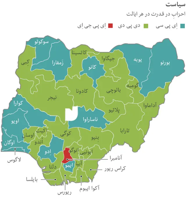 نیجریه، بزرگترین تولید کننده نفت آفریقا و پرجمعیت ترین کشور این قاره است. فقر در این کشور بسیار گسترده و کشور با حملات گروه اسلامگرای بوکوحرام رو به روست. انتخابات نیجریه که قرار بود ۱۴ فوریه برگزار شود، به دلیل نگرانی های امنیتی ناشی از حملات بوکوحرام شش هفته به تعویق افتاده است. نقشه های زیر تفاوت بین ایالت های این کشور را از جنبه های گوناگون نشان می دهد: