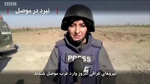 نفیسه کوهنورد، خبرنگار بیبیسی در موصل: ما درست در جبهه حومه غرب موصل هستیم. گروهى از نیروهاى عراقى از این سمت وارد شهر شدند اما درگیریهاى شدیدى در جریان است. صداى چند انفجار را شنیدیم که فرمانده نیروهاى واکنش سریع همراه ما گفت اینها خودروهای انتحارى بودند که منفجر شدند. تکتیراندازها هم چند بار به محلى که تیم ما همراه نیروها ایستادندهاند، شلیک کردند که بعد از شناسایى محلشان هلیکوپترهاى عراقى به آنها حمله کردند.