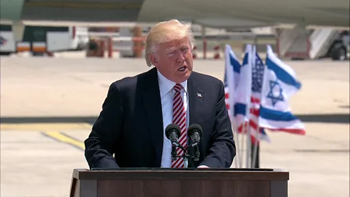 آقای ترامپ در سخنرانی خود در فرودگاه بن گوریون گفته است: " شاهد این هستم که همسایگان عرب اسرائیل بیش از بیش به این پی میبرند که خطر مشترک (هم برای اعراب و هم اسرائیل) ایران است."