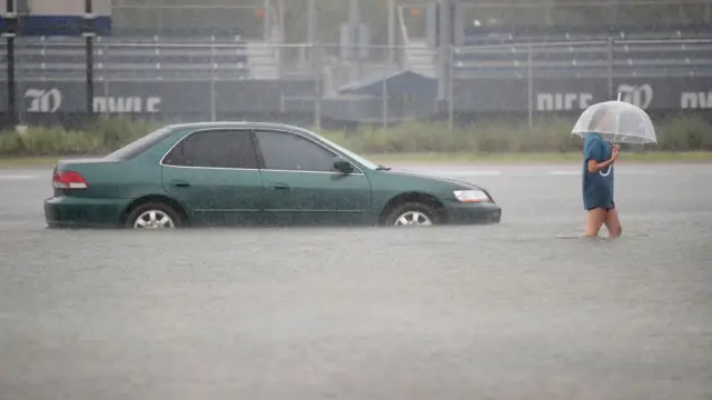 از زمان رسیدن توفان به تگزاس، میزان بارش ۷۵ سانتیمتر بوده که خیابانها را به رودخانه تبدیل کرده است.