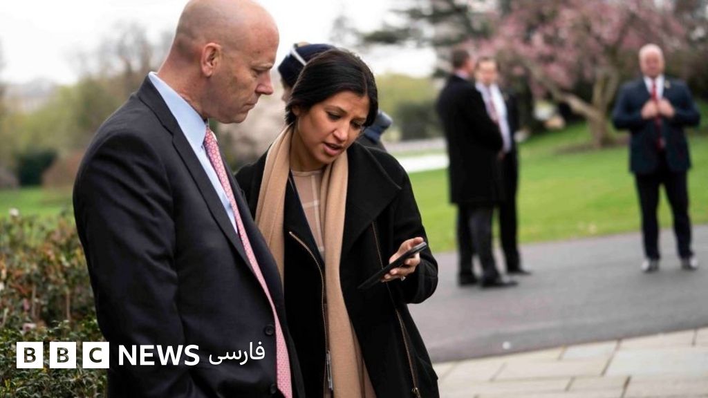 توضیح تصویر، کیتی میلر که در این تصویر کنار مارک شورت، رییس دفتر آقای پنس ایستاده، همسر استیون میلر، مشاور جنجالی دونالد ترامپ و مدافع سیاست‌های ضدمهاجرتی کاخ‌سفید است