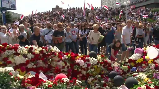 ساعتی پیش از تجمع معترضان در برابر ساختمان تلویزیون ملی بلاروس هم هزاران نفر در حالی که گل، پرچم و شمع به دست داشتند در مراسم خاکسپاری الکساندر تاراکوفسکی حضور یافتند؛ آقای تاراکوفسکی روز دوشنبه در جریان اعتراضات کشته شد.