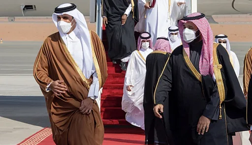 پس از سه سال و نیم قطع رابطه عربستان سعودی و قطر، حاکم قطر برای شرکت در اجلاس رهبران کشورهای عضو شورای همکاری خلیج فارس، به عربستان سعودی رفت و محمدبن سلمان، ولیعهد عربستان سعودی، به استقبال تمیم بن حمد بن خلیفه آل ثانی امیر قطر، در فرودگاه رفت و دو طرف علیرغم شیوع ویروس کرونا با کنار گذاشتن پروتکلهای بهداشتی یکدیگر را پای پلکان هواپیما در آغوش کشیدند.