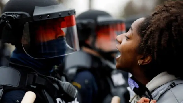 در ساعتهای پایانی دیروز یکشنبه (۱۱ آوریل) صدها معترض با فریاد زدن نام " دانته رایت"- فرد کشته شده- در مقابل مقر پلیس در مرکز بروکلین جمع شدند.
