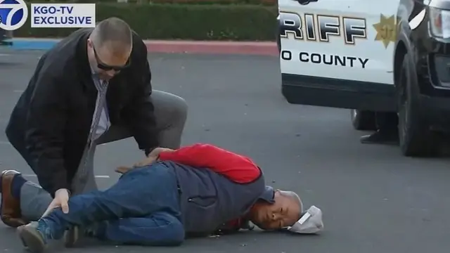 در تصاویری که منتشر شده او سپس خود را تسلیم پلیس منطقه سنت ماتئو، کرده است.