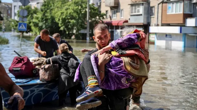 در حال حاضر هزاران نفر در مناطق اطراف تخلیه شدهاند و مقامات اوکراینی هشدار داده اند که حدود ۴۲۰۰۰ نفر در معرض خطر سیل هستند.