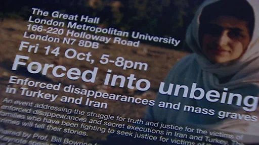 روز جمعه گروهی از فعالان حقوق بشری ایران و ترکیه تجربه و تحقیقات خود را درباره ناپدید شدگان قهری کشورشان در همایشی به نام "اجبار به نیستی" یا کنفرانس "ناپدید شدگان و گورهای دسته جمعی در ترکیه و ایران" در دانشگاه متروپولتین لندن ارائه کردند.