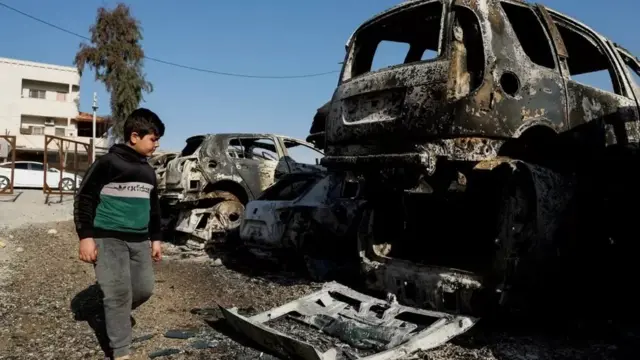 خانهها یکی پس از دیگری ویران شدهاند، ویترین مغازهها و دهها خودرو به آتش کشیده شدهاند، از جمله تعداد بسیاری در یک پارکینگ خودروهای دست دوم که در آتش سوختند.
