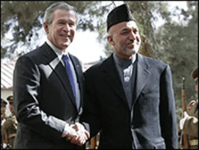 رئیس جمهوری آمریکا پیش از فرود آمدن در فرودگاه بگرام در هواپیما به خبرنگارانی که نمی دانستند در راه کابل هستند، گفته بود که کشورش اشتباه دهه 1980 میلادی را در افغانستان تکرار نخواهد کرد. جورج بوش گفت اجازه نخواهد داد افغانستان به پناهگاه امنی برای شبکه القاعده تبدیل شود.