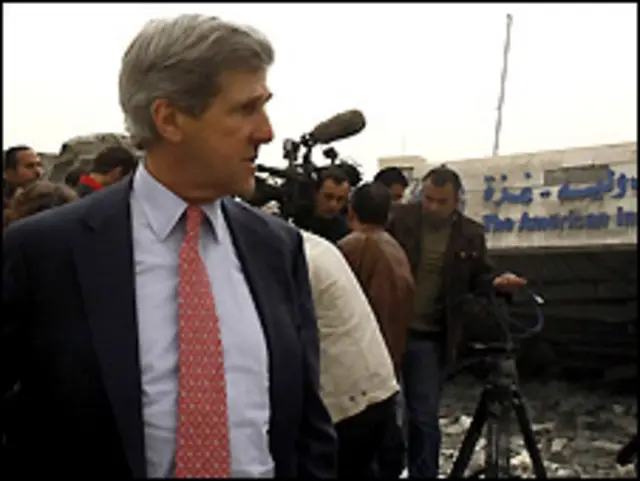 هم اکنون جان کری رئیس کمیته روابط خارجی سنای آمریکا و دو نماینده کنگره آمریکا سرگرم دیدار از نوار غزه هستند اما انتظار نمی رود با حماس ملاقات کنند.