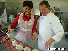 جو فیندلی (راست، همراه با پونه قدوسی) از تولید کنندگان نمونه غذای سنتی اسکاتلند است