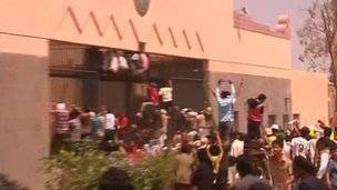 تعدادی خودرو در داخل محوطه حیاط سفارت به آتش کشیده شدهاند و ساختمان سفارت از کارکنانش تخلیه شده است.