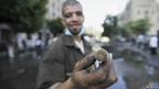 یکی از معترضان در مصر پوکهای را که پس از درگیری با نیروهای پلیس در خیابان یافته است، نشان میدهد. این درگیری ها در یکی از خیابان های منتهی به سفارت آمریکا در نزدیکی میدان تحریر قاهره رخ داد.