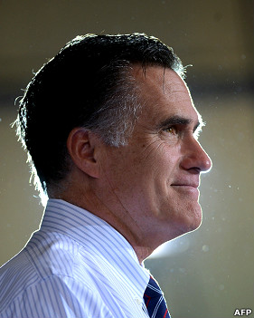 مایلز رامنی پیراهن سفید میپوشید و کراوات میزد.
