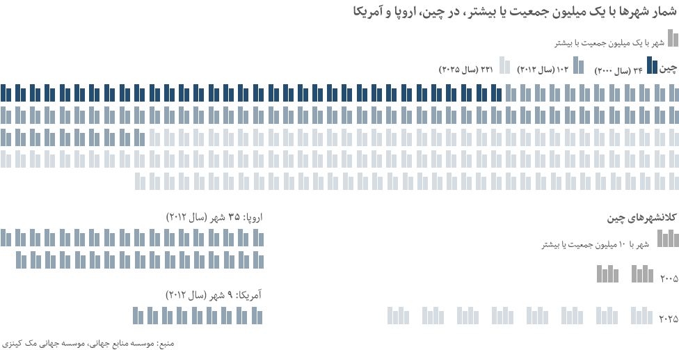 همچنان که کارخانه های بیشتری در چین ساخته می شود، جابه جایی بزرگ جمعیت نیز در حال وقوع است. ده ها میلیون کارگر مهاجر با ترک مناطق روستایی، برای کار و کسب درآمد بیشتر به شهرها مهاجرت کرده اند. این جا به جایی سبب افزایش تقاضا برای کالاهای مصرفی نیز شده است تا نیازهای گسترش شهرنشینی تامین شود.