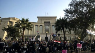 آنها به تجمع طرفداران دولت مصر در مقابل ساختمان دادگاه قانون اساسی در قاهره معترض هستند.