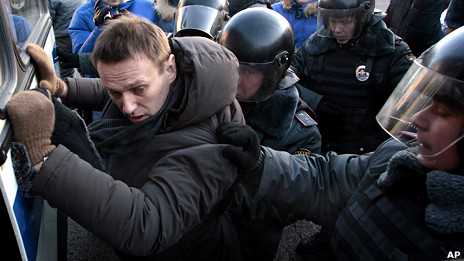 الکسی ناوالنی از برجستهترین رهبران اعتراضاتی است که در سال گذشته علیه زمامداری ١٣ ساله ولادیمیر پوتین برگزار شد.