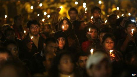 شامگاه شنبه، مردم هند به سوگ زن جوانی که در اتوبوسی در هند مورد تجاوز گروهی قرار گرفته بود، نشستند.