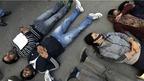 • عده ای از مردم خشمگین، در اعتراض به ناامنی برای زنان و در پی حضور نیروهای ضدشورش در شهر، کف خیابان ها دراز کشیده اند.