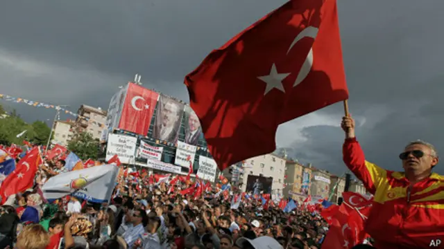 دهها هزار نفر از حامیان رجب طیب اردوغان در یک گردهمایی که به دعوت حزب عدالت و توسعه در منطقه غازلی چشمه استانبول برگزار شده بود، شرکت کردند.