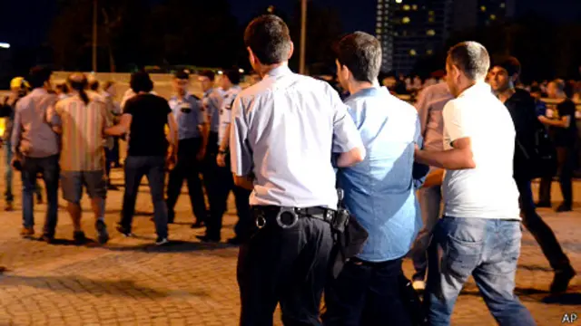 پلیس ده نفر از کسانی را که حاضر به ترک میدان نشدند بازداشت کرد. اعتراض نمادین "مرد ایستاده" توجه بسیاری از معترضان را جلب کرده است.