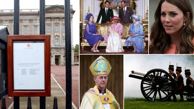 ۶. رسم است که خبر تولد و درگذشت اعضای خاندان سلطنتی روی میلههای کاخ باکینگهام نصب شود. خبر تولد فرزند کاترین و ویلیام قرار است روی سهپایهای مجلل در حیاط جلویی کاخ نصب شود. ملکه، اعضای ارشد خاندان سلطنتی و خانواده میدلتون (خانواده کاترین) پیش از همه از تولد نوزاد باخبر خواهند شد، البته اگر خودشان در بیمارستان حاضر نباشند. سپس یکی از آجودانهای سلطنتی به سرعت خود را با اسکورت پلیس از بیمارستان به کاخ میرساند. با نصب این برگه آگهی – که سربرگ کاخ باکینگهام دارد و به امضای اعضای اصلی کادر پزشکی رسیده – مردم برای اولین بار امکان آن را پیدا میکنند که از دختر یا پسر بودن نوزاد باخبر شوند. بعد از نصب این آگهی، اطلاعیهای هم در توئیتر و فیسبوک منتشر میشود، و به رسانهها اطلاع داده میشود.