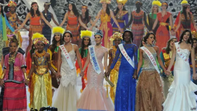 توضیح تصویر، مراسم دختر شایسته سال ۲۰۱۳ در بالی اندونزی تحت تدابیر شدید امنیتی برگزار شدتوضیح تصویر، بیش از یک صد دختر شایسته از سراسر جهان در مراسم امسال حضور داشتندتوضیح تصویر، فینالیست های امسال از فیلیپین، فرانسه و غنا بودندتوضیح تصویر، مگان یونگ، از فیلیپین به عنوان دختر شایسته امسال در جهان برگزیده شد