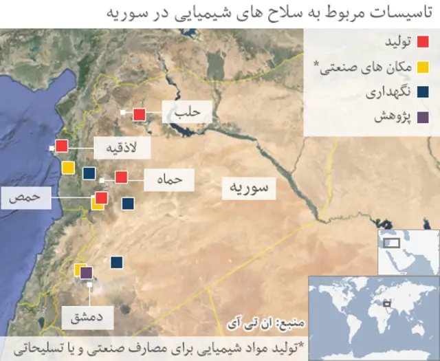 گفته میشود که سوریه نزدیک به هزار تن گاز سارین، گاز خردل و سایر سلاحهای شیمیایی ممنوعه در اختیار دارد.