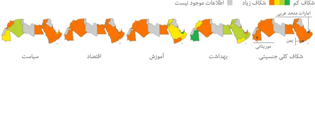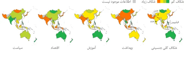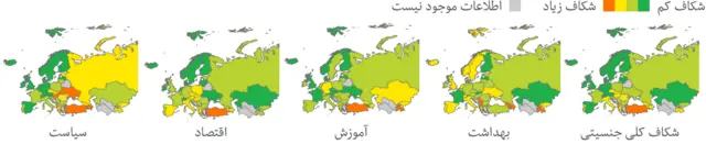 با کلیک روی نقشه های زیر، خواهید دید که جایگاه کشورهای مختلف از نظر شکاف جنسیتی در زمینه های بهداشتی، آموزشی، اشتغال و سیاست کجاست؟