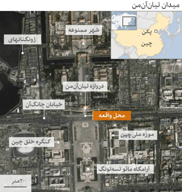 این حادثه در مقابل "شهر ممنوعه" و در فاصله نسبتا کمی از برخی از مهمترین نهادهای دولتی چین به وقوع پیوسته است.
