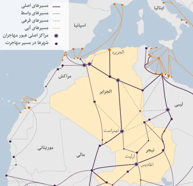 مسیرهای حرکت مهاجران در منطقه صحرای آفریقا