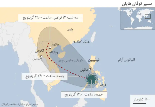بنیگنو آکوئینو رئیس جمهور فیلپین از مردم در نواحی دستخوش توفان خواسته بود آنجا را ترک کنند و از قایقران ها خواسته بود بندر را ترک نکنند.