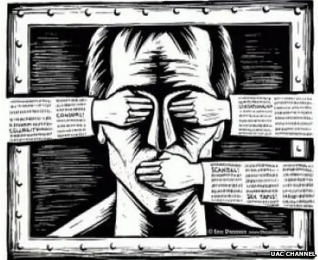 شاید یکی از آنها، که یک عکس است و بارها و بارها توییت شده، بهتر از همه وضعیت را خلاصه میکند. در این عکس مردی با دهان و چشمان پوشیده دیده میشود و روی آن نوشته شده: "چون قبلا وضعیت اینطور بود."