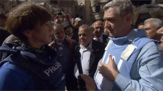 مقامات سازمان ملل با کارکنان هلال احمر سوریه همکاری میکنند. هلال احمر سوریه در اکثر عملیاتهای امداد رسانی در سراسر سوریه حضور دارد. یکی از مقامات سازمان ملل که معلوم بود از وخامت اوضاع تحت تأثیر قرار گرفته، و سخت مشغول گفتگو با فرد دیگری بود، به او گفت: "این خلاف همه جنبههای انسانیت است."