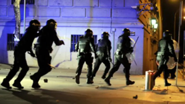 جوانان معترض اسپانیایی در مادرید به پلیس حمله کردند
