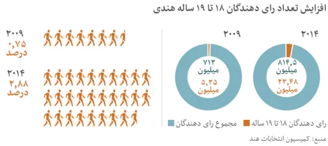 این انتخابات عمدتا مسابقه ای بین نارندرا مودی، کاندیدای نخست وزیری از حزب اصلی مخالف بهاراتیا جاناتا و رائول گاندی، معاون حزب حاکم کنگره است. <link type="page"><caption> بیشتر بخوانید.</caption><url href="http://www.bbc.co.uk/persian/world/2014/04/140406_l45_an_india_election.shtml" platform="highweb"/></link>
