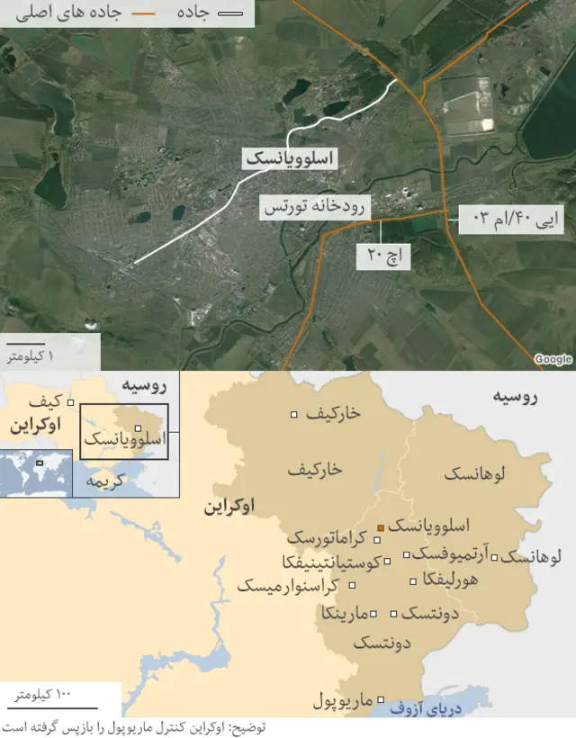 اسلوویانسک، واقع در حدود یکصد و شصت کیلومتری مرز روسیه، از محلهای تمرکز نیروهای شورشی طرفدار روسیه است که هفت تن از ناظران سازمان همکاری و امن را نیز به گروگان گرفتهاند.