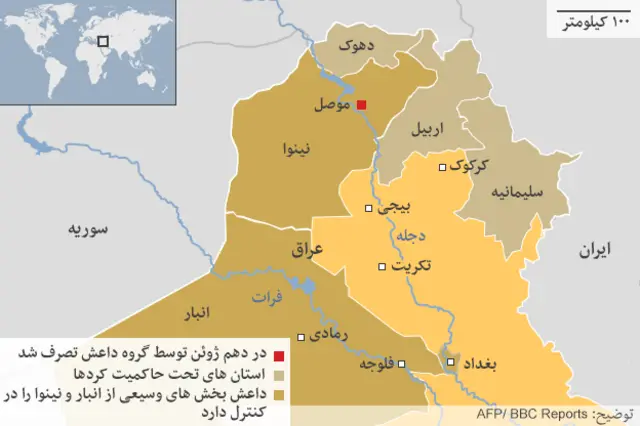 داعش به پیاده کردن قوانین سختگیرانه و ظالمانه در مناطق تحت کنترلش معروف شده است. اما فتح موصل در ماه ژوئن (خرداد ۱۳۹۳) بود که تکانههای شدیدی به سراسر جهان فرستاد. آمریکا میگوید که تصرف دومین شهر بزرگ عراق توسط داعش تهدیدی برای سراسر منطقه است.