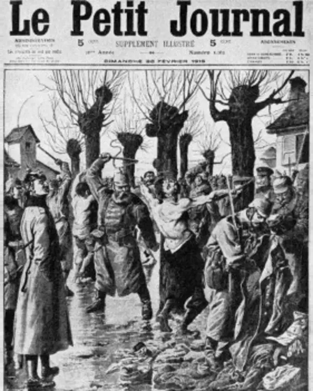 آنچه که در تبلیغات دولت فرانسه از دشمن به تصویر کشیده میشد، نظیر تبلیغاتی بود که در دوران جنگ در آمریکا و بریتانیا رواج داشت. در روزنامهها و اعلامیهها و پلاکاردها، آلمانها را فطرتاً "نژادی وحشی و خشن و زمخت و میلیتاریست" معرفی میکردند. در مقابل، فرانسه را "مدافع فرهنگ و تمدن" میخوانند که اکنون در مقابل "هونهای وحشی" (سربازان آلمانی) ایستاده است.